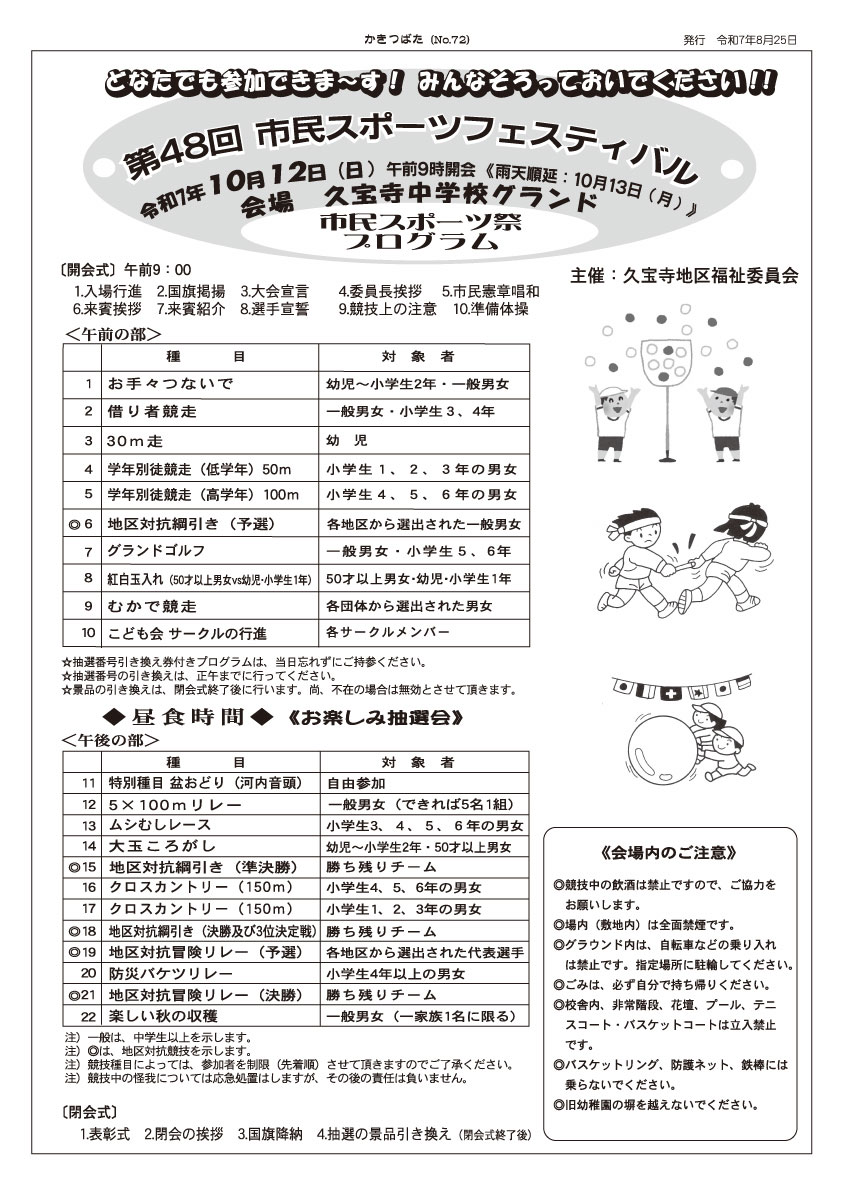 【主な記事】「好きやねん久宝寺まつり」と「市民スポーツ祭」のプログラムを特集しました。